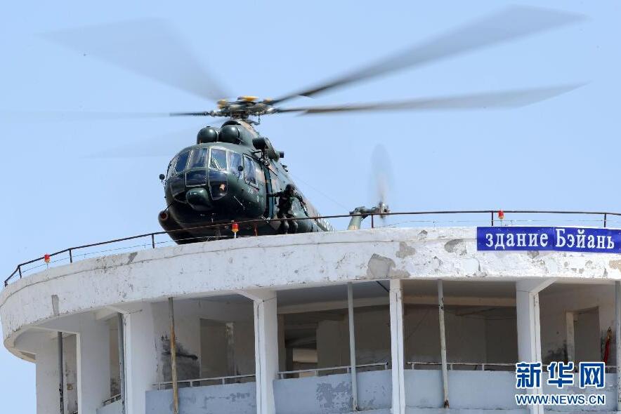 中国人民解放军第38集团军某部女子特战连是中国首支女子特战连,成立于2013年3月,队员从各个基层部队优中选优挑选出来。此次,女子特战队员将全程参加“和平使命—2014”上海合作组织成员国武装力量联合反恐军事演习中的城市反恐清剿、化装侦察、甄别人质、审讯俘虏、营救行动等五大军事行动,首次参与国际军事交流。张领 摄 图片来源:新华网