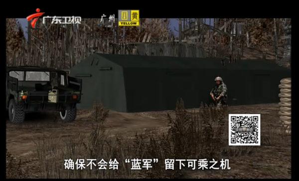 据广东卫视消息,在“跨越-2014·朱日和”系列演习当中,解放军第一支专业化的蓝军七战六胜,成绩骄人,还上演了一场“蓝军”假扮地方慰问团,活捉红军司令的戏。图为视频截图。