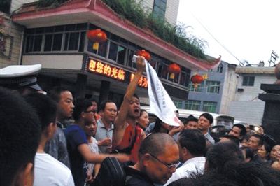 据在场人员录音显示,公安局副局长承认事发当天,教官喝酒。调查结果显示,教官喝了16瓶啤酒和一些其他的酒。图为湖南龙山,学生聚集现场。网友供图