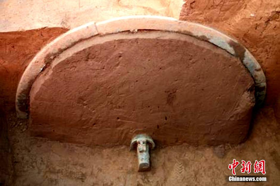 近日,考古人员在陕西省宝鸡市岐山县周原遗址附近发现一座西周中晚期车马坑,车辖、车輨、车軎相继露出,兽面纹车軎镶嵌精美绿松石。图为发掘现场。中新社发 陕西文物局 供图