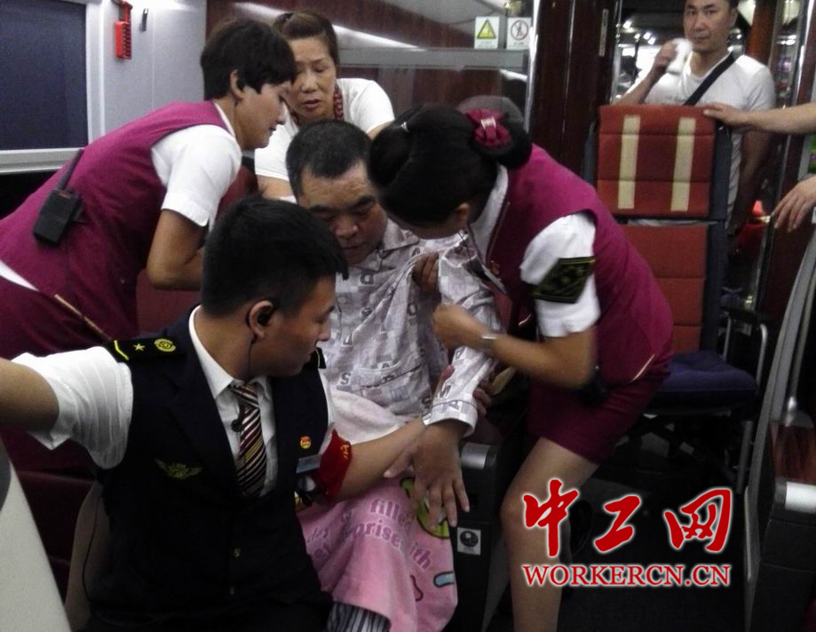 虽然暑运期间客流大,任务重,但是列车长王娇珑的工作热情丝毫没有降低,仍然以饱满的状态为每一名旅客做好服务工作。为提高班组职工的服务质量,确保暑期工作的顺利进行。王娇珑坚持“安全第一,预防为主”的方针,认真贯彻落实上级下达的安全指示精神,始终将安全工作放在首位。并从思想上高度重视,时刻抱有“客运无小事”的心理,严把安全关,在原有的基础上,要求乘务员加大了安全宣传和禁烟宣传的力度,并做好“查危”工作,在列车运行中做到出现隐患及时发现消除。王娇珑利用出乘会和福州休息时间,组织乘务员进行安全业务知识的学习和应急预案的演练,让每一位职工做到心中有数、尽职尽责,严格执行各项操作规程,不断提高安全意识,确保安全工作尽善尽美,为今年暑运工作的圆满完成奠定了坚实的基础。图为北京客运段高铁二队G55/56次三组帮助困难旅客。