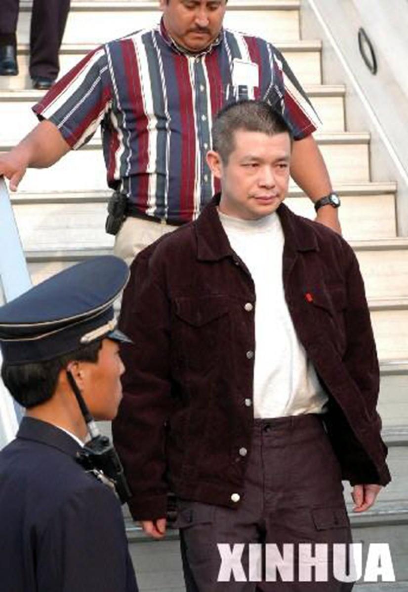 2004年4月16日,犯罪嫌疑人、原中国银行广东省开平支行行长余振东被美国警方押送回北京首都国际机场时走下飞机。余振东自1993年至2001年间利用职务之便,贪污挪用巨额公款后潜逃美国,2001年11月,中国警方根据《中美刑事司法协助协定》要求美方就此案向中方提供刑事司法协助,经中美两国执法机关的密切合作,美方没收了余振东转移到美国的部分赃款并全部返还中方。新华社记者袁满摄