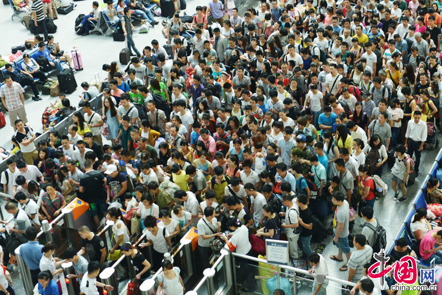 2014年08月31日,浙江省杭州市,旅客通过铁路杭州东站检票口。 龙巍摄影