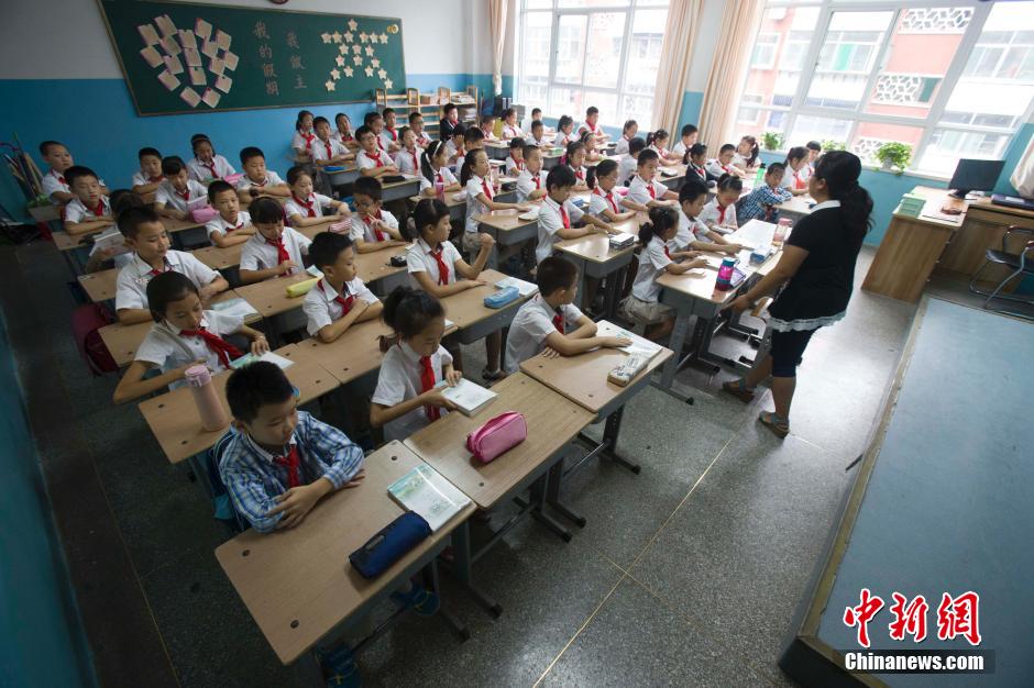 9月1,山西太原,某小学小学生开始返校上课。当日,中国多地学校迎来新学期开学日。中新社发 张云 摄