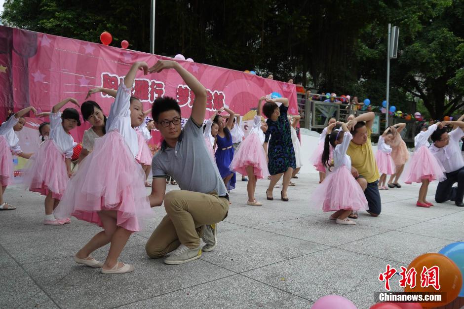 9月1日,广西柳州市公园路小学举行开学典礼,家长与孩子共同表演亲子节目。 王运鹏 摄