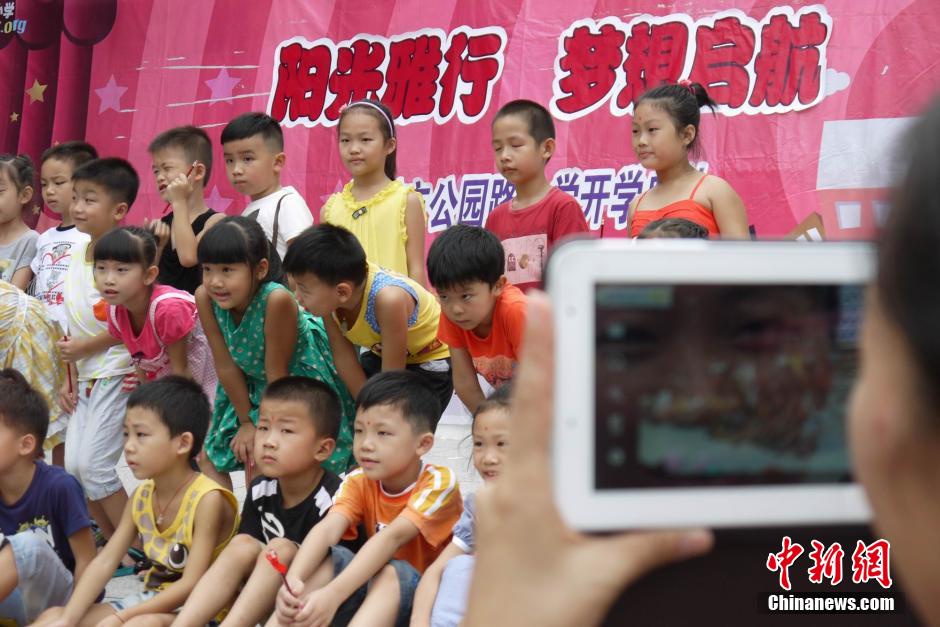 9月1日,广西柳州市公园路小学举行开学典礼,一年级新生合影留念。 王运鹏 摄