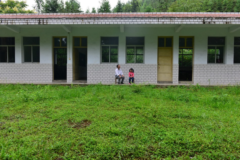 9月1日,课间时间,湖北恩施龙凤镇大龙潭村杉树湾教学点的谢世魁老师和学生刘欣怡在教室外休息。