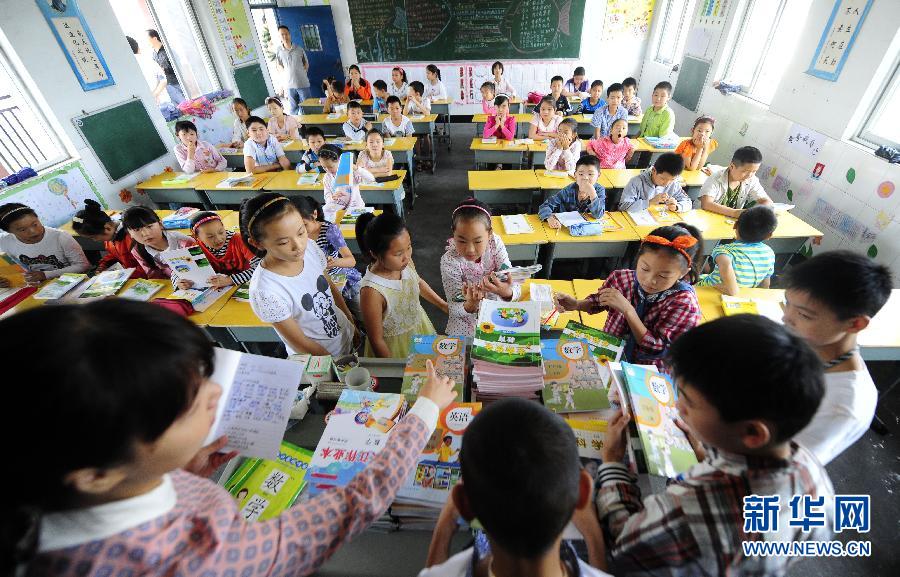 9月2日,事件发生所在班级学生在领取新学期教材。