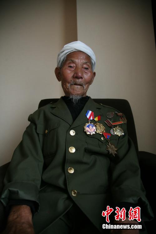 图为抗战老兵曾庆平。中新社发 缪超 摄