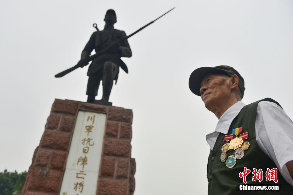 9月3日是中国人民抗日战争和世界反法西斯战争胜利69周年纪念日,也是全国人大常委会以立法形式确立中国人民抗日战争胜利纪念日后的第一个纪念日。当日上午,成都一些抗战老兵前往川军抗日阵亡将士纪念碑缅怀战友。中新社发 张浪 摄