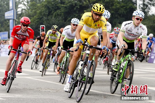 9月3日,2014环中国国际自行车赛进入第五赛段成都彭州绕圈赛。中新社发 陆欣 摄