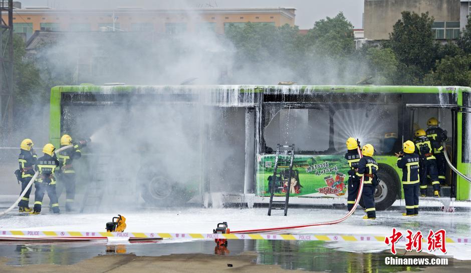 演练现场,一名“扒窃嫌疑人”在公交车上作案,被“受害人”和乘客发现后抗拒抓捕,并用刀具将“受害人”劫持。公交车驾驶员迅速停车疏散其他乘客。与此同时,长沙市公安局110指挥中心接到群众报警,立即调集特巡警支队、公交治安分局和望城区公安局等单位警力赶到现场进行紧急处置。