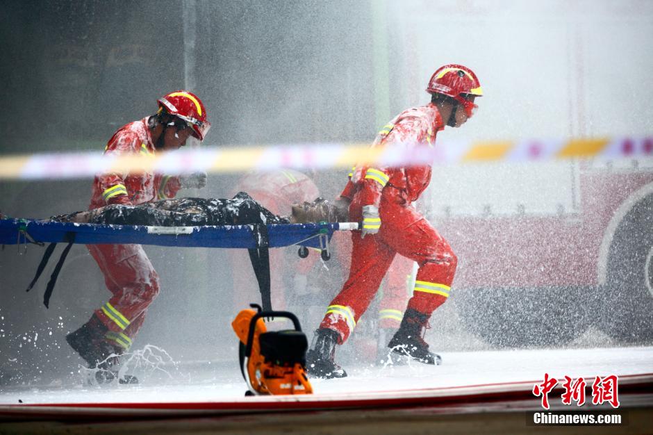 长沙公共交通反恐防暴演练 公交车被烧成骨架