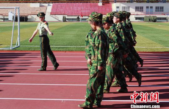 9月4日,是南开大学2014级新生军训第一天,今年的学生军训涉及22个学院,参训学生3300名左右。女教官“温柔亮相”。任永华 摄