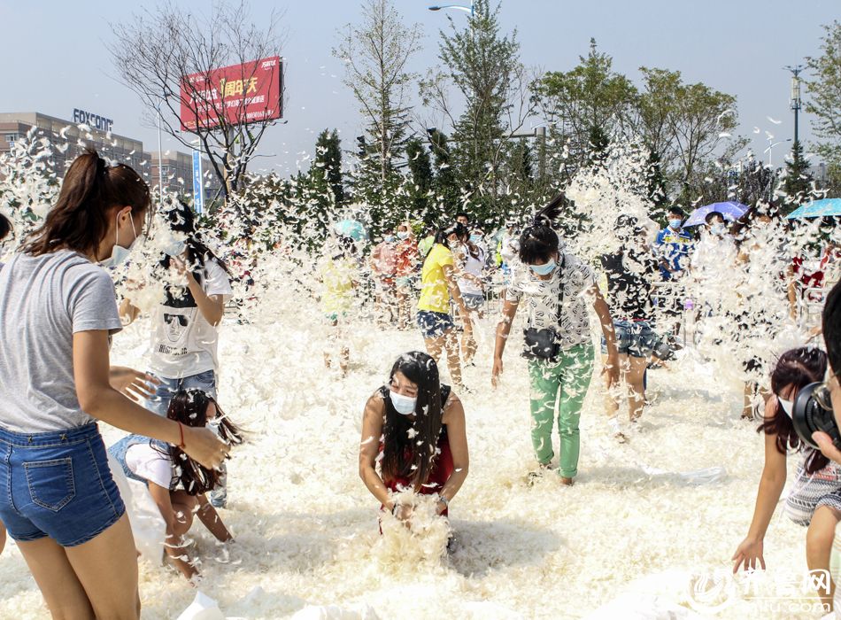 活动旨在号召缓解市民生活压力,释放内心激情。图为“枕头大战”现场。(齐鲁网发 薄恩岐 摄)