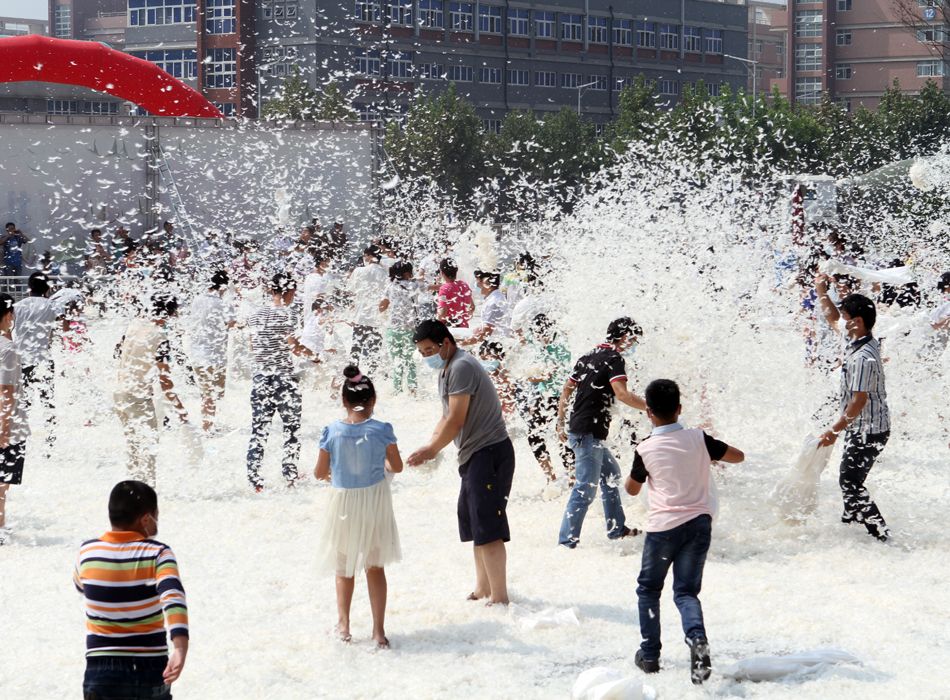 图为“枕头”大战现场,市民激情酣战,释放压力。(齐鲁网发 薄恩岐 摄)