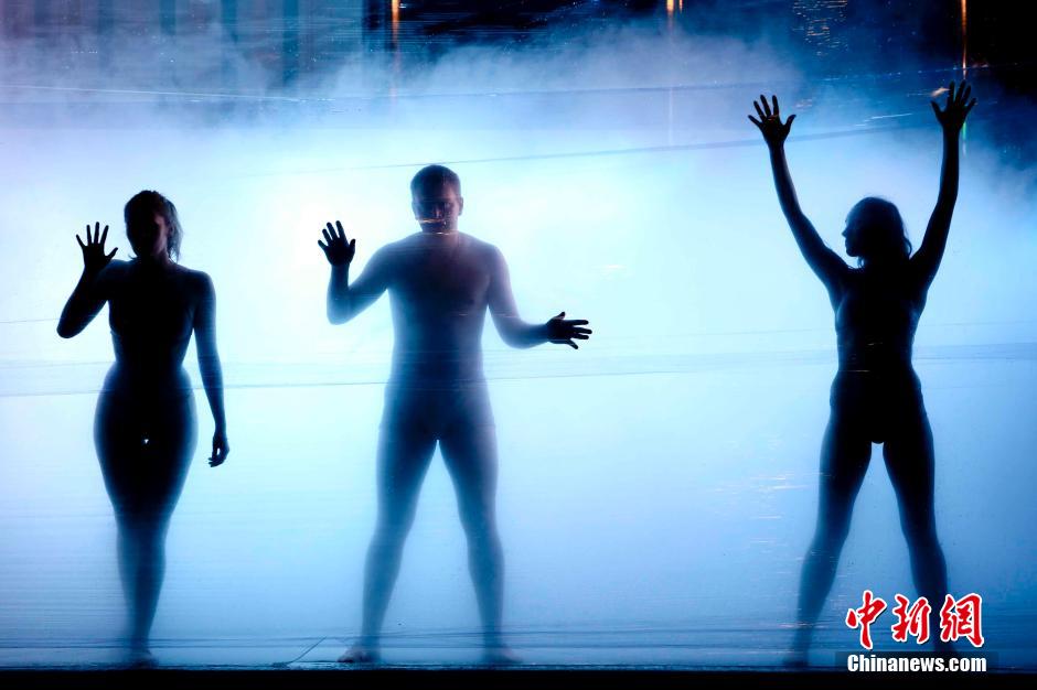 图为来自俄罗斯、乌克兰及乌干达等国家的20余名艺术家演绎了一场名为“H2O秀”(水秀)的混合风演出。中新社发 陆欣 摄