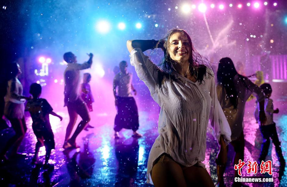 图为演员在演出互动环节走进观众。中新社发 陆欣 摄