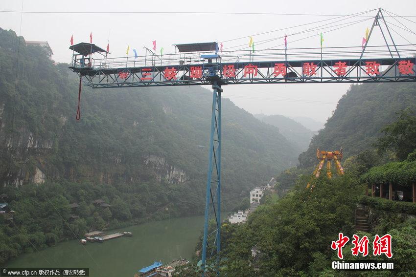 9月9日,湖北省宜昌市,“最萌法师”延参带着弟子恒东、恒庄来到西陵峡风景区,挑战蹦极和溜索等极限运动,引起众多游客的围观。因恐高,延参法师放弃了蹦极,而是让自己的弟子去挑战。王涛 摄 图片来源:CFP视觉中国