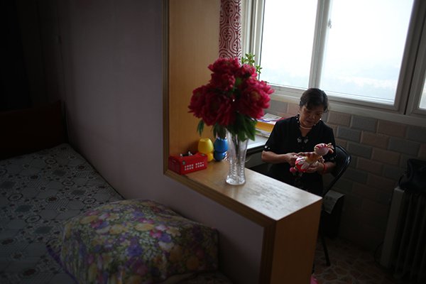 图为9月7日,北京青年路小区,胡女士在阳台上抱着孙女的玩具,一旁儿子的卧室被她收拾的整整齐齐。她的儿子、儿媳、孙女三人去泰国游玩回国时搭乘了MH370。从丽都酒店回家后,她一度不敢回家,屋内到处都是小孙女的玩具,可爱的样子总是从眼前浮现。家里只有她一人,每天都拿着手机通过微信和其他家属沟通,早上祈福是必做的事情。