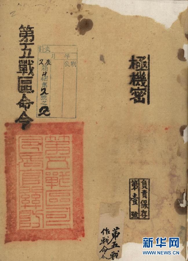 1939年4月30日,第五战区命令。9月10日,国家档案局在其官网发布了《浴血奋战——档案里的中国抗战》第十七集:随枣会战。新华社发(中国第二历史档案馆提供)