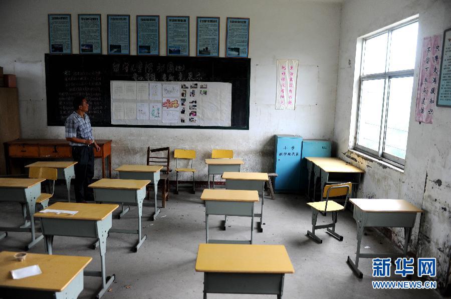 9月10日,在巢湖市银屏镇张山小学,一名老师在昔日的教室里。目前这里已经成为存放课桌、设备的地方。这所学校的大部分教室已经空置或改作其他用途。新学期伊始,孩子们重返校园,安静了一个暑期的校园再次热闹起来。然而,对于一些乡村小学来说,昔日校园热闹的场景已不能重现,农村小学生源的流失让这些乡村学校面临“空壳化”困境。 “这个学期,学校只招收到3名学生。”对于安徽省肥西县大丰小学教师俞萍来说,这是她从教30年来面对的最少一届学生。10多年前,大丰小学“最热闹”的时候有6个年级,300多名学生。像大丰小学这样近年来学生数量迅速下降的乡村学校不是少数,记者在安徽多地采访发现,很多乡村小学面临着生源不足、年级断层、教师流失等困难。安徽省巢湖市银屏镇张山小学是一所可开设6个年级,容纳300多名学生的乡村小学,学校最“辉煌”的时候教室里坐满了学生。如今,张山小学偌大的校园里只有2个年级的6名学生和4名老师。“农村生源减少,再加上很多孩子被父母带到务工地读书,乡村学校生源不足已成为常态。”张山小学的老师分析了生源不足的原因。 “教育的不均衡也是导致乡村学校学生流失的一个原因”,安徽省太湖县新仓镇转桥教学点有着30多年教龄的余明传老师说,“随着城镇化的发展,为了子女接受更好的教育,一些村民把孩子带到教育资源相对集中的乡镇或县城学校读书。”余明传所从教的教学点曾是一个拥有200多名学生的小学,从2004年开始,学生数量逐年下降到如今的9名。余明传说,他和另外3名老师承担着一、二年级9名学生的全部课程。生源的减少,也导致乡村学校教师的分流,这些“袖珍”学校的教师被分流到学生相对较多的乡镇中心校或其他乡村学校。由于教师和学生都不足,这些乡村学校年级出现断层,一般只保留低年级教学。小学生在这里读完一年级或二年级,便会转学到离家较远的学校就读。由于上下学路途较远,对这些年幼的孩子来说,随之而来的便是交通安全问题。对于这些面临“空壳化”的农村学校来说,昔日的辉煌已不能再现。“只要有一名学生,我们就必须坚持办学”乡村老师表达着他们坚守的信念。新华社记者 刘军喜 摄