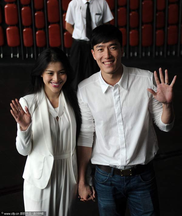 人民网北京9月12日电 (吴亚雄)11日,刘翔携新婚妻子葛天出席“向音乐盲童赠票”的公益活动。刘翔与葛天同穿白色系俨然一对热恋中的佳人,身为演员的葛天表情多变。刘翔对妻子则是呵护有加,大方牵着媳妇的手对镜头展露甜蜜笑容,秀新婚钻戒。