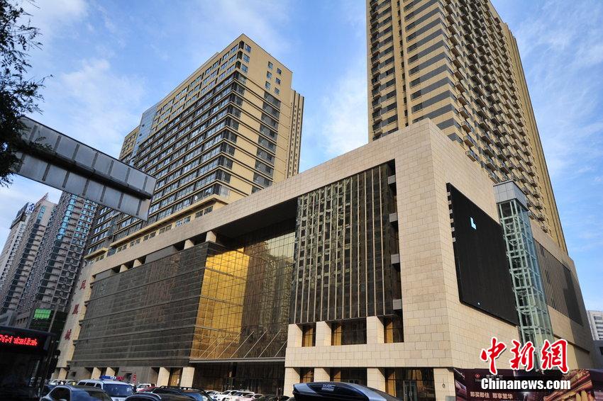 2014年09月12日,辽宁省沈阳闹市街头出现一栋“土豪金”大楼,金灿灿引行人驻足观看。图片来源:CFP视觉中国