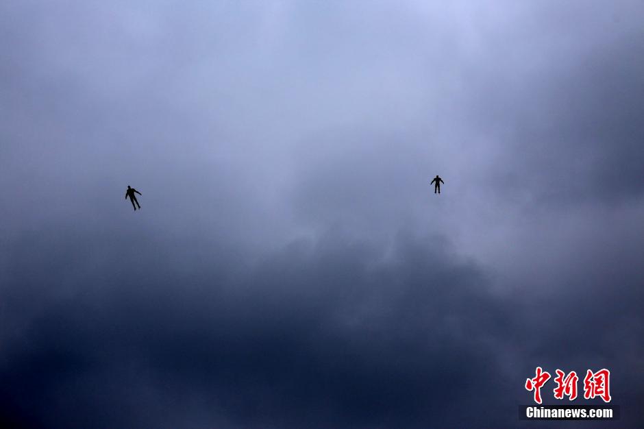 9月12日,中原地区首届专业通用航空展会在河南郑州上街机场开幕,展会邀请了来自美国、立陶宛、罗马尼亚和英国的特技飞行师表演飞行特技。两个长约1米左右的真机版“钢铁侠”飞行器现身现场,进行飞行表演,在空中做出一系列的惊险动作,引来观众阵阵惊呼。 中新社发 杨正华 摄