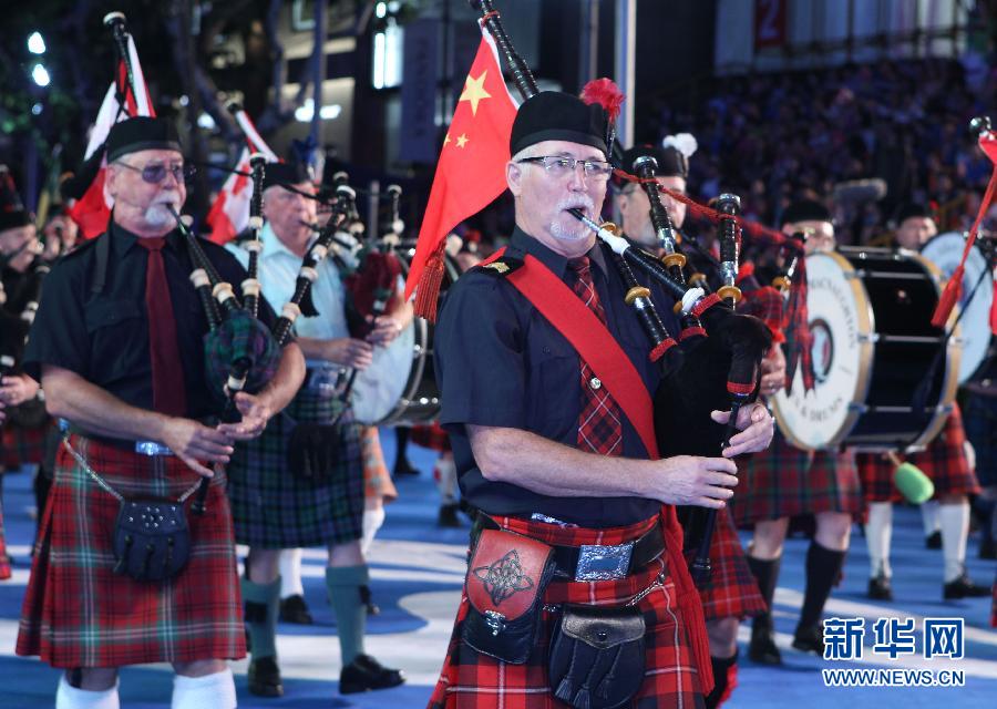 9月13日,加拿大高地风笛团在巡游队伍中表演。当日,2014年上海旅游节花车大巡游拉开帷幕。32支境内外表演团体和22辆花车亮相淮海路,共同演绎精彩纷呈的中外民族风情。新华社记者裴鑫摄