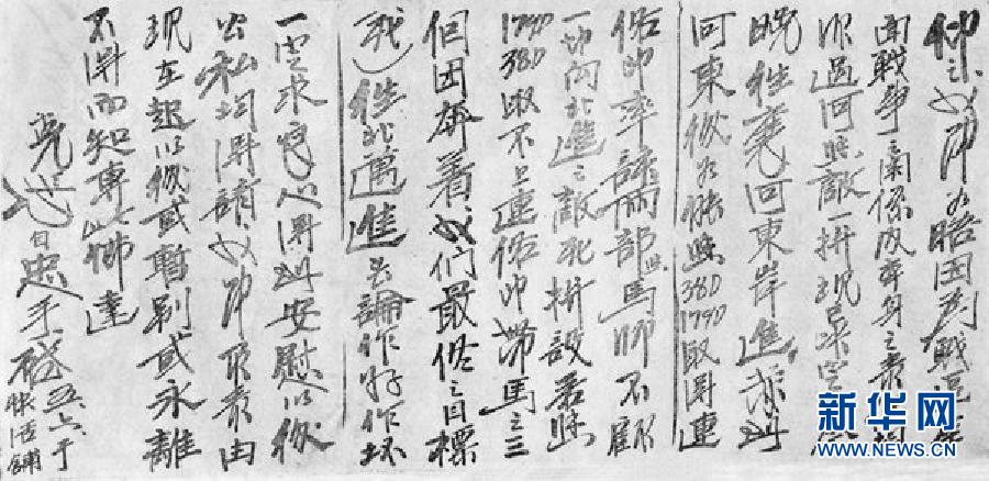 1940年5月6日,第三十三集团军总司令张自忠在鄂西前线出击前致冯治安副总司令诀别信。 9月14日,国家档案局在其官网发布了《浴血奋战——档案里的中国抗战》第二十一集:枣宜会战。 新华社发(中国第二历史档案馆提供)