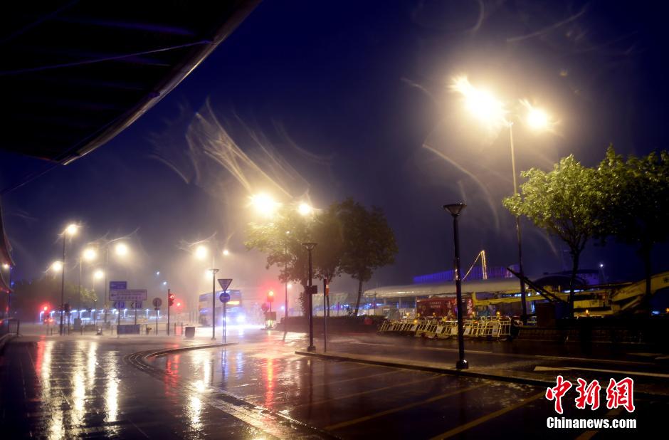 9月16日晨,受台风“海鸥”影响,香港悬挂8号风球,香港岛东部杏花邨海岸边积水严重。中新社发 张宇 摄