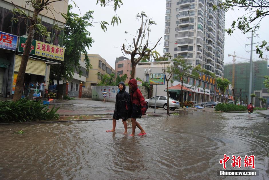 9月16日,台风“海鸥”登陆海南文昌。省会海口自9月15日傍晚起下起大雨。16日凌晨始更是狂风暴雨大作。海口多个河流漫堤,海水倒灌,市内多条马路被淹。王辛莉 摄