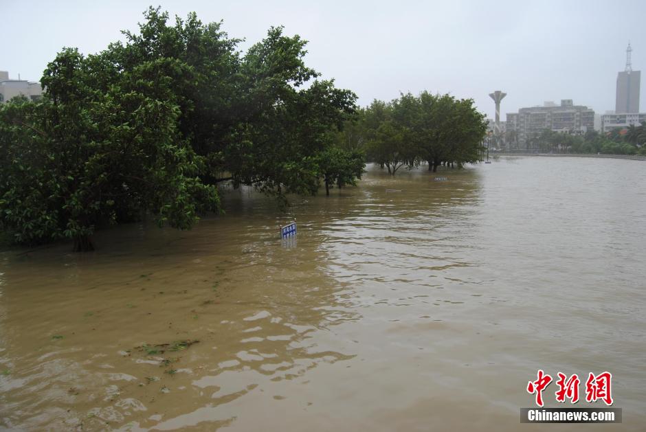 9月16日,台风“海鸥”登陆海南文昌。省会海口自9月15日傍晚起下起大雨。16日凌晨始更是狂风暴雨大作。海口多个河流漫堤,海水倒灌,市内多条马路被淹。王辛莉 摄
