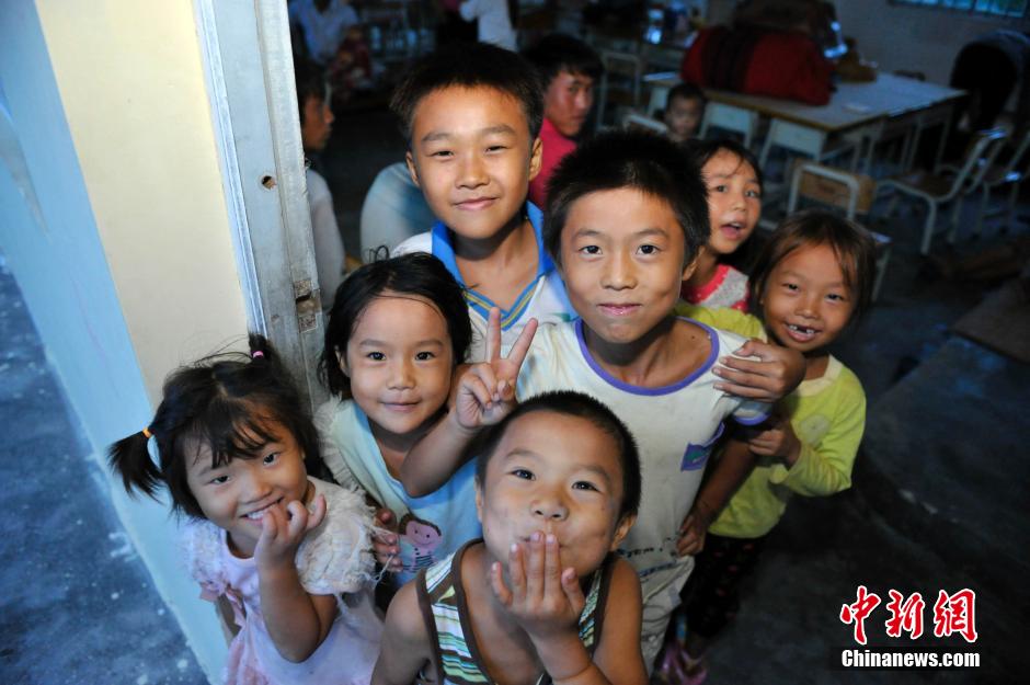 9月16日,今年第15号台风“海鸥”当日9时40分在海南文昌市翁田镇沿海登陆后,兴风作浪,琼北沿海发生天文潮,东寨港的防潮堤决口20余处,潮水漫堤,罗豆农场再遭其害。文昌市罗豆农场遭受超强台风“威马逊”重创后的“伤痕未痊愈”,16日再次遭受“海鸥”袭击,已致13村庄被淹,转移5000多人。图为在文昌市罗豆农场中学安置点的小朋友们。中新社发 骆云飞 摄