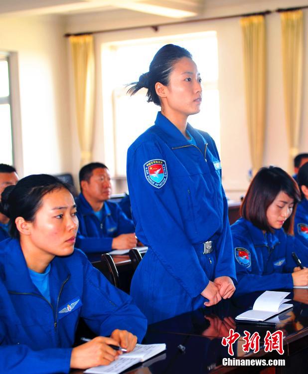 中国空军新闻发言人申进科上校9月16日在第十届中国航展新闻发布会上表示,曾在新中国成立60周年国庆首都阅兵庆典上飞越天安门的中国首批歼击机女飞行员,将在第十届中国航展上驾驶国产歼-10飞机舞动蓝天,回报社会各界的关心支持。空军八一飞行表演队将以全新阵容和全新动作备战航展、劲舞珠海。图为空军八一飞行表演队提问飞行准备情况,女飞行员应答自如。 中新社发 刘川 摄