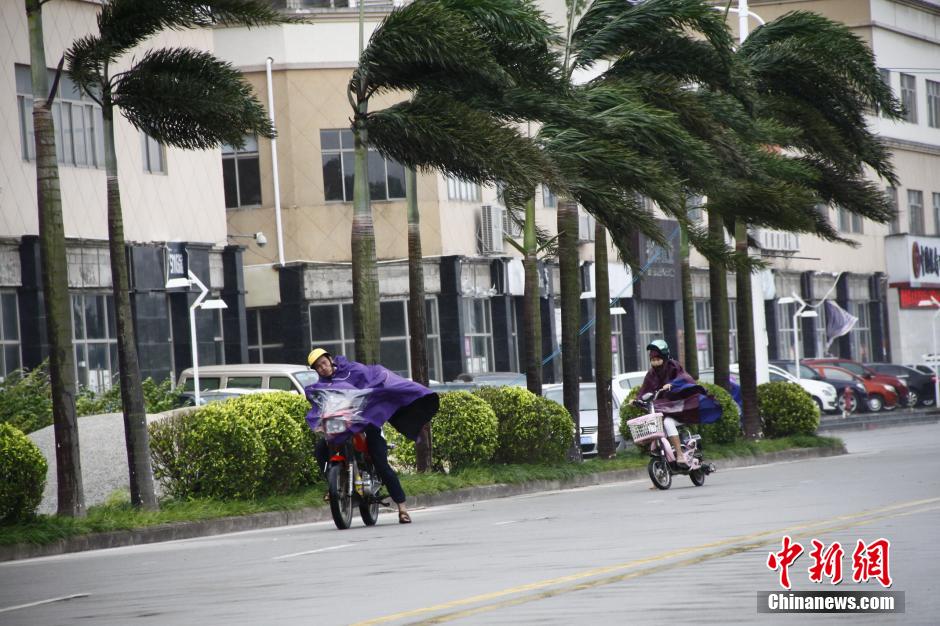 9月16日23时,台风“海鸥”在越南北部沿海登陆。“海鸥”给广西南部沿海地区带来强风雨影响,多个市县气象台发布台风、暴雨预警信息。图为钦州市狂风肆虐。 中新社发 李斌喜 摄