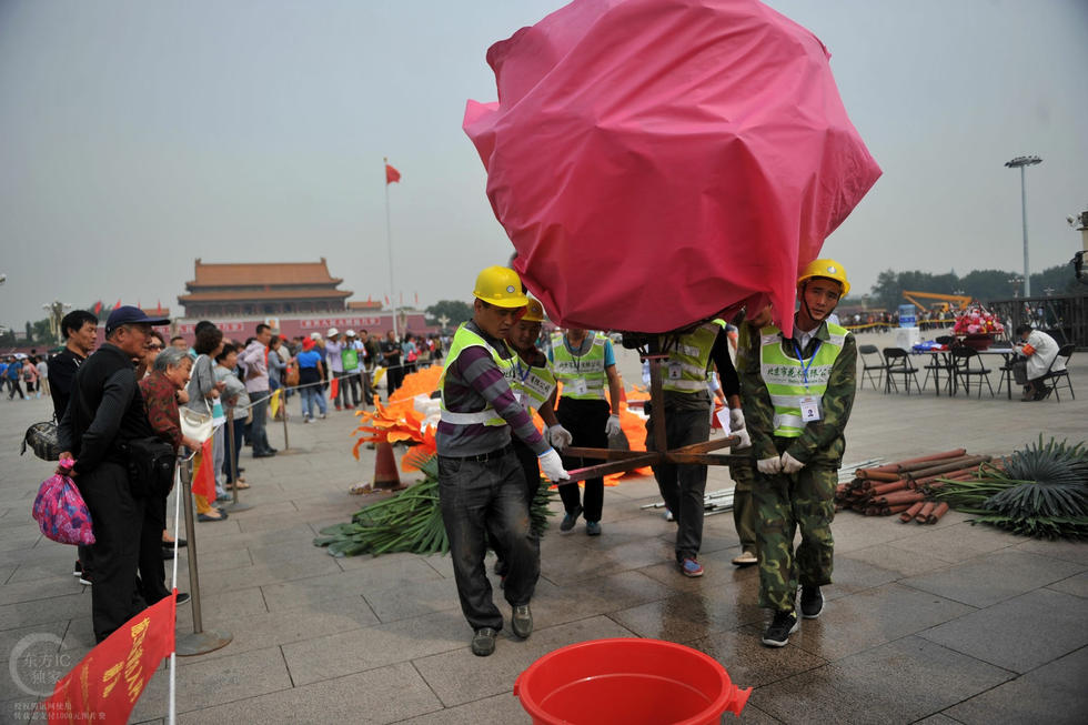 除牡丹外,花篮中还有月季、玉兰、芙蓉等传统花材,也有部分鲜花。整个花篮直径50米,篮盘直径15米,顶高15米,非常有气势。