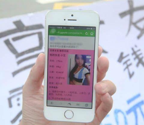 屌丝男摆摊出租女友每小时10元 500元包月