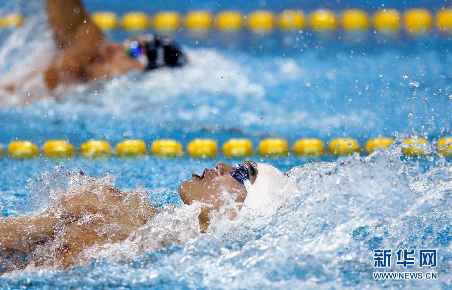9月21日,中国选手徐嘉余在比赛中。 当日,在2014仁川亚运会男子100米仰泳决赛中,中国选手徐嘉余以52秒81的成绩获银牌。新华社记者费茂华摄