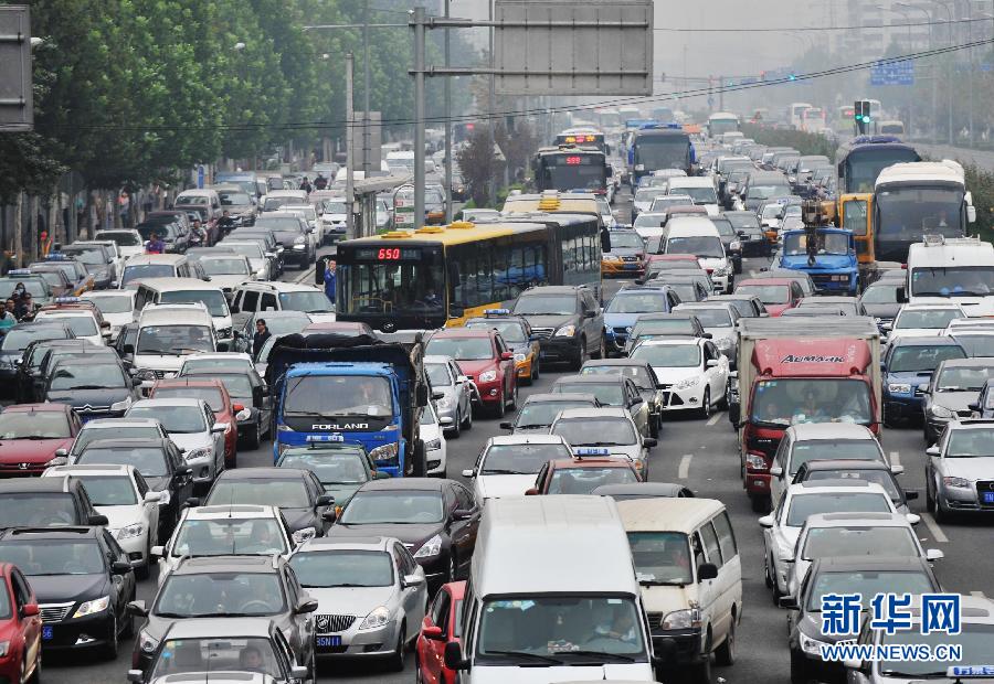 9月22日,刘家窑桥附近拥堵的交通状况。当天是“世界无车日”,但是因为恰逢周一,又临近十一黄金周,北京交通早高峰依然拥堵。根据北京市交通委员会的微博显示,在早晨8时20分左右,北京全路网交通指数上升至8.6。新华社记者 李文 摄