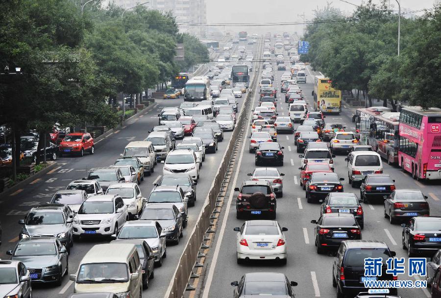 9月22日,连接南三环和南二环之间的道路,汽车排起了长龙。当天是“世界无车日”,但是因为恰逢周一,又临近十一黄金周,北京交通早高峰依然拥堵。根据北京市交通委员会的微博显示,在早晨8时20分左右,北京全路网交通指数上升至8.6。新华社记者 李文 摄