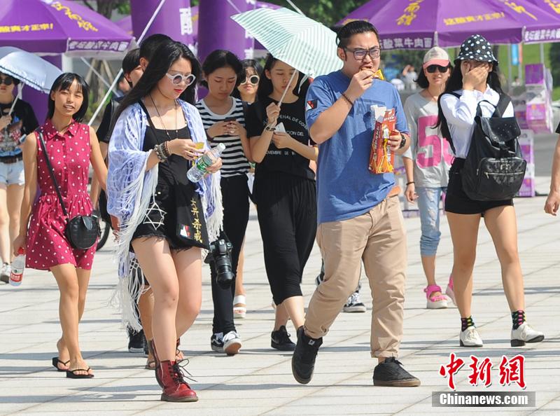 结束连日的阴雨天气重庆主城气温回升至30度,炎热天气重庆妹子纷纷换上清凉夏装出行。刘渝 摄