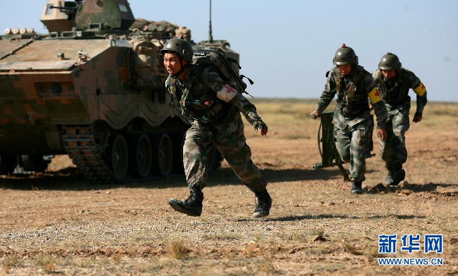 据悉,这次演习的规模和实战化程度均超过以往,参演兵力4000余人,动用各型飞机、装甲车等1000余架台。“红军”由陆军第38集团军某红军团扮演,对抗我军第一支专业化“蓝军”——北京军区某机步旅,真正实现作战牵引卫勤,卫勤紧跟作战。新华社记者 逯阳 摄