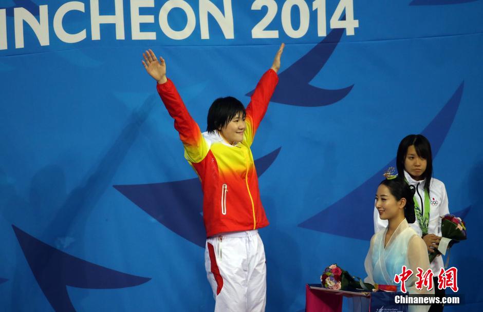 9月26日,仁川亚运会游泳比赛继续在文鹤朴泰桓游泳馆举行。在女子200米个人混合泳决赛中,中国选手叶诗文以2分08秒94的成绩夺得冠军并打破赛会纪录。中新社记者 汤彦俊 摄