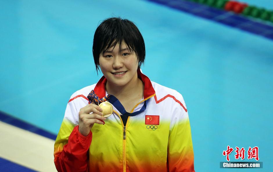 9月26日,仁川亚运会游泳比赛继续在文鹤朴泰桓游泳馆举行。在女子200米个人混合泳决赛中,中国选手叶诗文以2分08秒94的成绩夺得冠军并打破赛会纪录。中新社记者 汤彦俊 摄