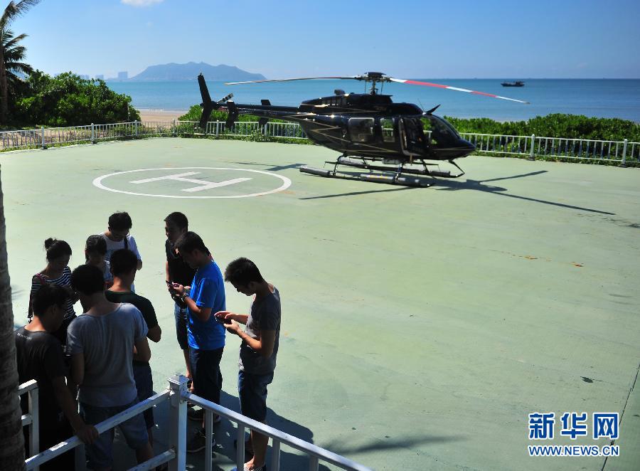 为迎接即将到来的十一黄金周,三亚亚龙通用航空公司斥资3000万新近引进一架美国贝尔407型7座直升机,为游客打造海陆空的立体旅游体验,至此该公司用于低空旅游的各型直升机已达到11架。新华社发(沙晓峰 摄)