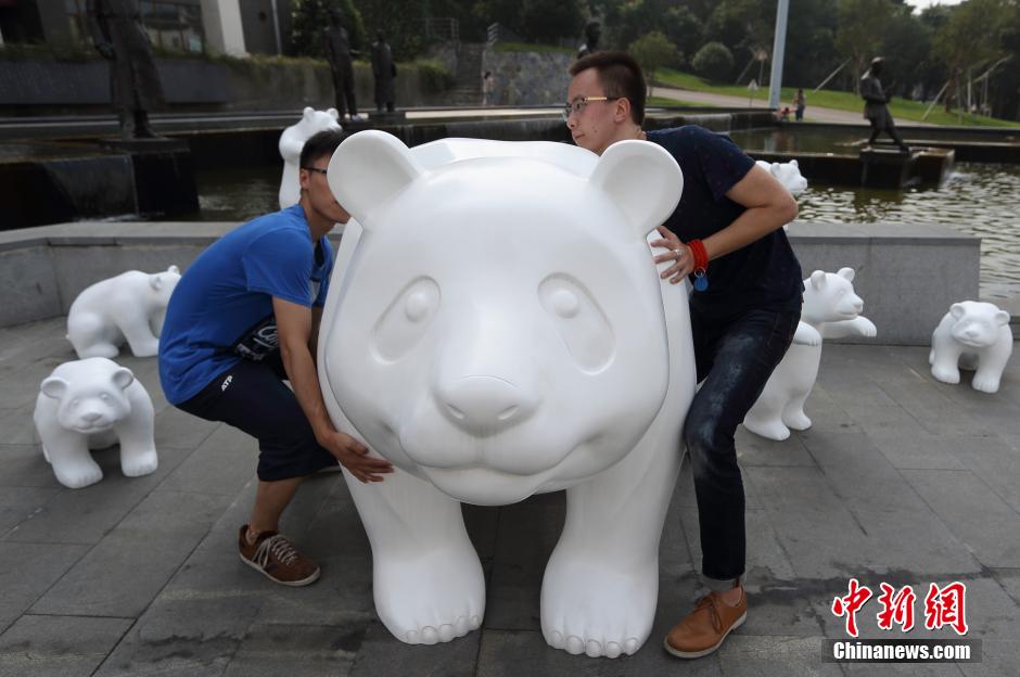 9月28日,工作人员将熊猫白模摆放整齐。当日,“亮出你的态度”首届彩绘大熊猫公共艺术展作品征集走进南京高校,据了解,由成都领汇文化HeartPanda携手“芭莎艺术校园行”彩绘熊猫征集活动从即日起持续到12月31日,将走访清华大学、中国美术学院、台湾大学等七大高校,号召热爱艺术创作的各界人士加入进来,传递“艺术、自然、人文”等理念,为公众提供一个可深度参与的艺术活动。据悉,2015年将举办首届HeartPanda全球最大规模的熊猫公共艺术展,将以青年艺术家与艺术学子为主导力量,并融合当地城市的非物质文化特色,向世界呈现中国当代艺术新浪潮。中新社发 泱波 摄
