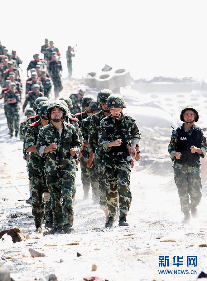 9月28日,武警战士在饥饿条件下进行体能考核。当日,武警上海总队九支队举行有“魔鬼日”之称的军事技能考核。在设定的缺粮断水条件下,支队官兵通过武装奔袭、负重行军、泥潭搏击等多项极限课目锤炼,战士们的意志、耐力和心理承受力经受了全面的考验。新华社记者 陈飞 摄