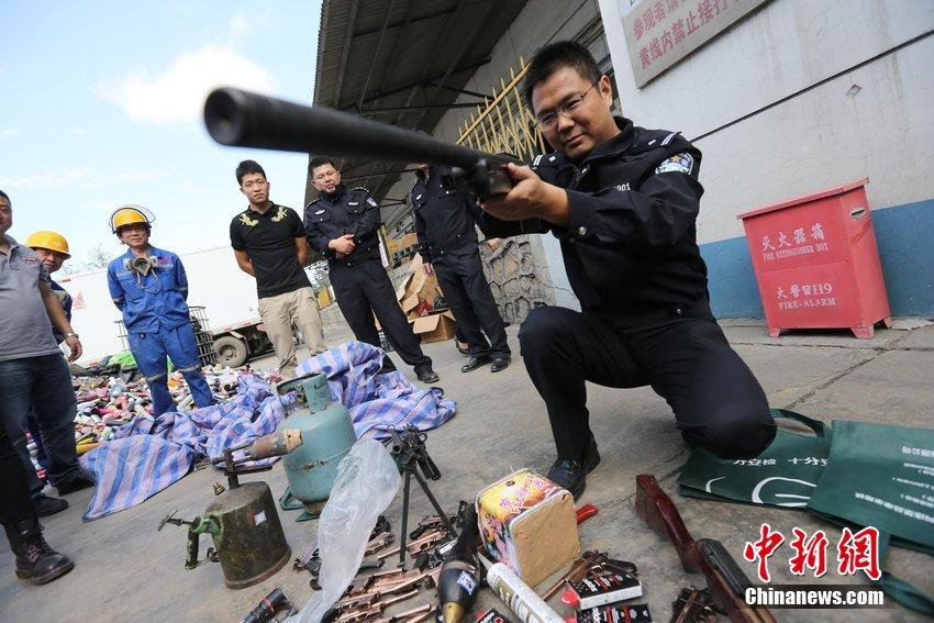 查获的违禁品及乘客自弃限带物品包括发胶、杀虫剂以及打火机、仿真枪、菜刀、管制刀具、弩、弹弓以及燃气罐等物品。图片来源:CFP视觉中国